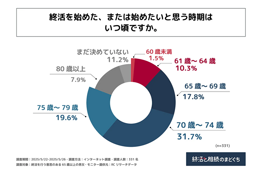 終活を始めた/始めたい時期で最も多いのは「70~74歳」
